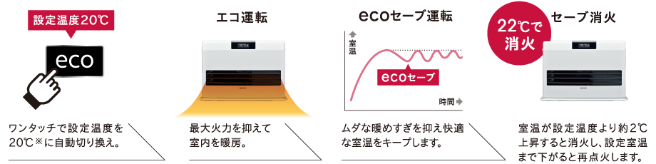 ecoセーブ運転なので灯油の節約にもなる。