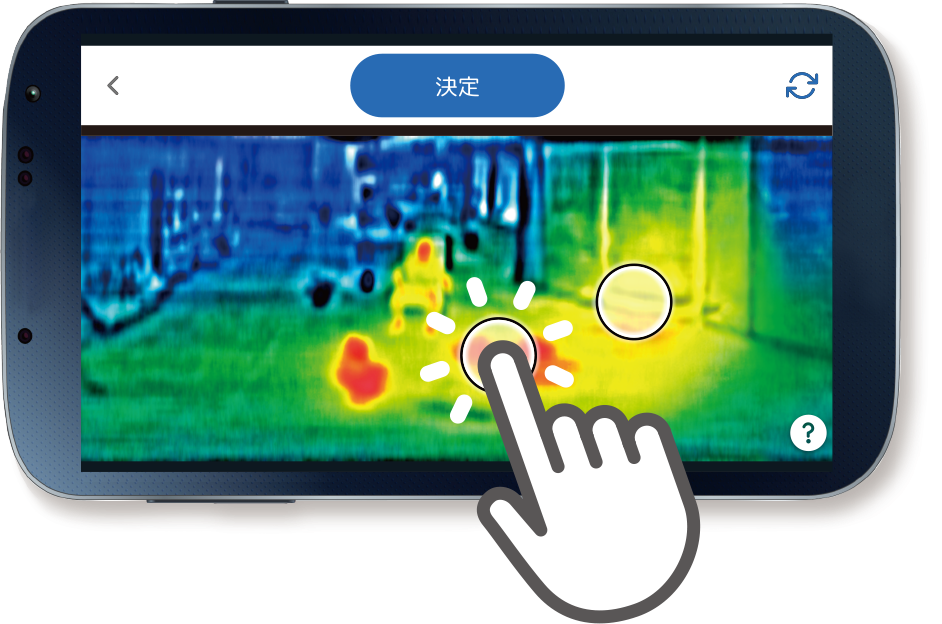 その名もタッチ気流機能。スマホ画面上の熱画像を確認しながら気流を届けたい場所をタッチするだけで、気流の方向を調整できる驚きの機能!まさにスマートフォンならではという感じ。